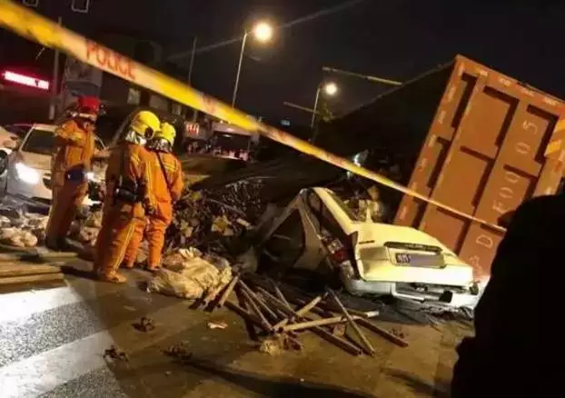 30日傍晚,上海龙吴路放鹤路发生一起严重交通事故,一辆土方车转弯时侧翻,整车几百根钢管倾泻,将一辆转弯的面包车彻底压扁,面包车内一对兄妹不幸当场身亡。另有一名交警受伤,两辆在路口等红灯的车也被压损。